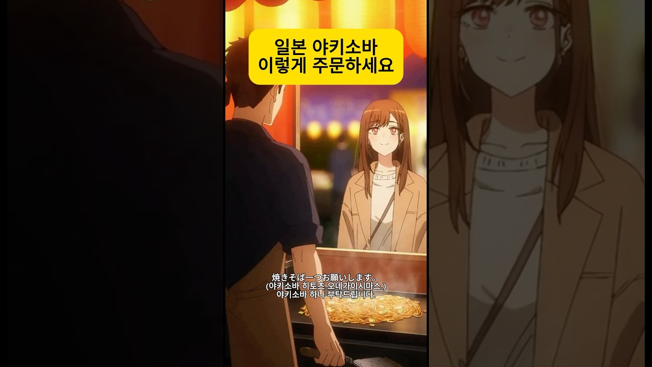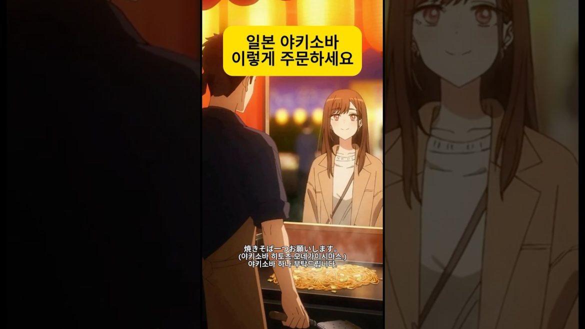 일본 여행 가서 야키소바 주문 제대로 해보기 오늘의 상황은 한국여자가 노점에서 야키소바를 주문하는 장면이에요. 대사 …